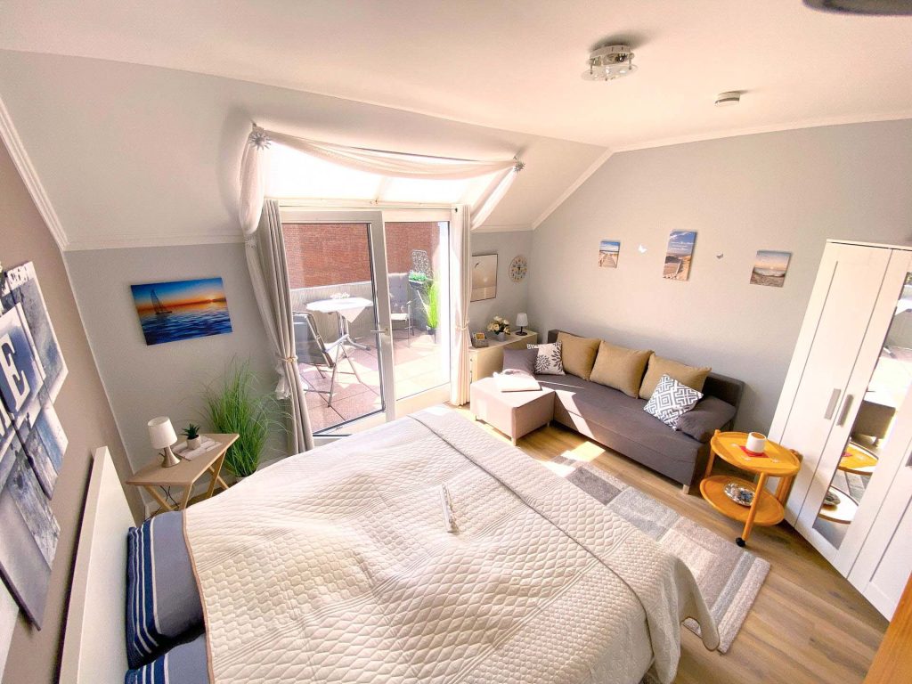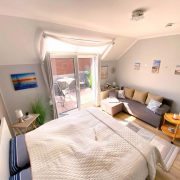 Hier sehen Sie das Wohn/Schlafzimmer mit Sofa, rechts der Kleiderschrank weiterlesen...
